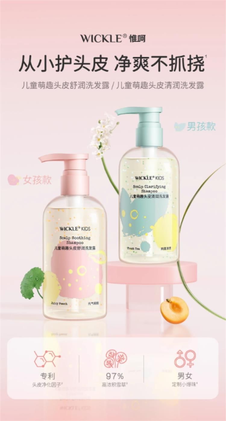商品名称:WICKLE惟呵 儿童萌趣头发清润舒润洗发水