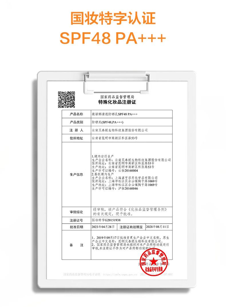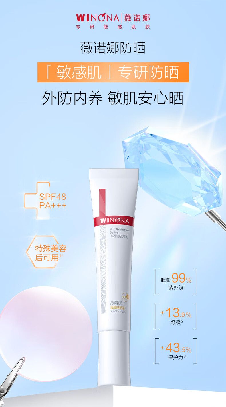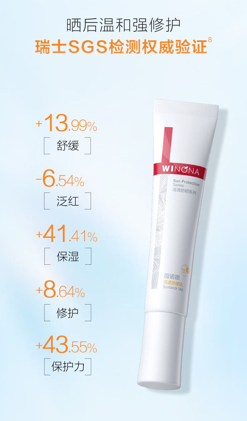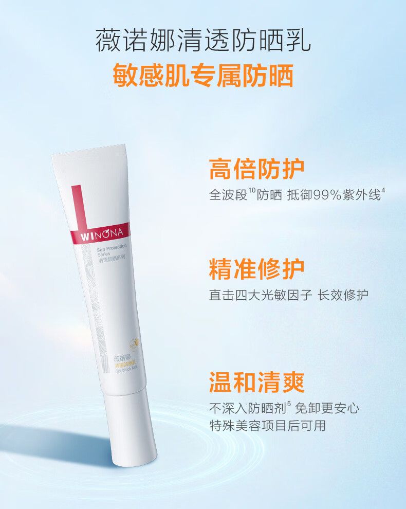 商品名称:Winqan/薇诺娜 清透防晒乳15g*2 SPF48 PA+++