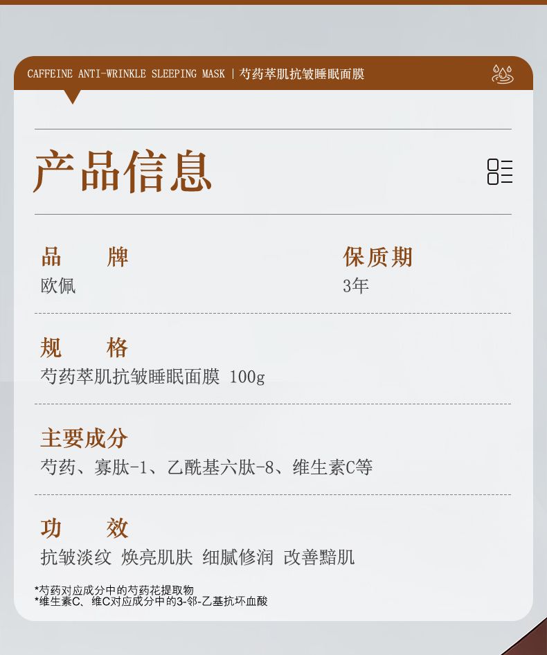 商品名称:欧佩 芍药萃肌抗皱睡眠面膜 100g 细腻滋润补水保湿涂抹面膜