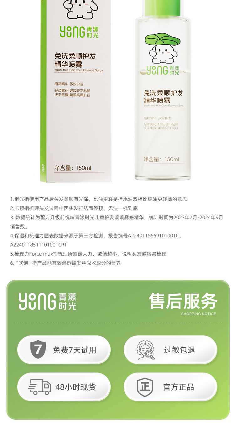 商品名称:悦哺 免洗柔顺护发精华喷雾 150ml/瓶