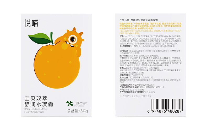 商品名称:悦哺 宝宝水凝面霜 50g/瓶