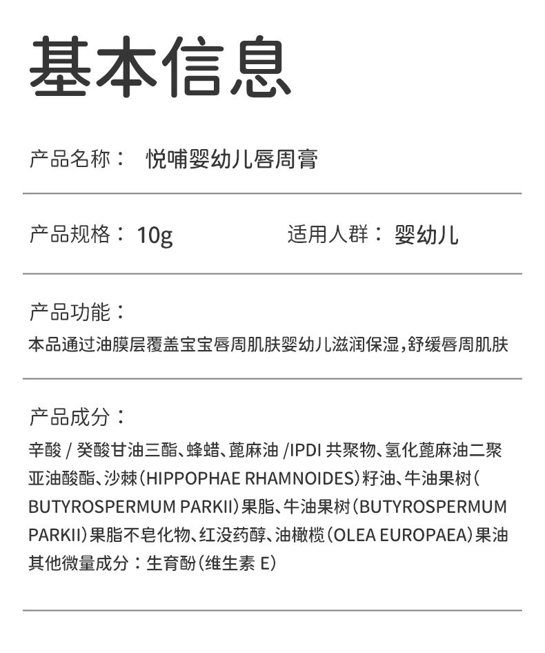 商品名称:悦哺 婴幼儿唇周膏 10g/支