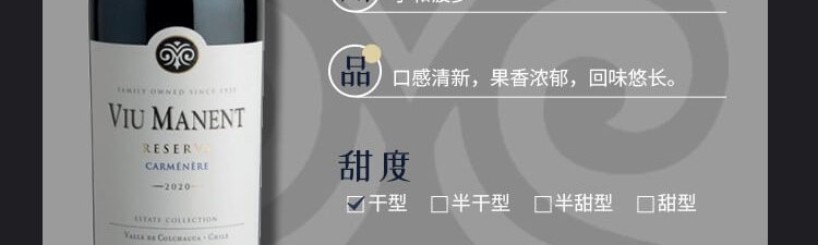 商品名称:威玛 珍藏佳美娜 干红葡萄酒750ml