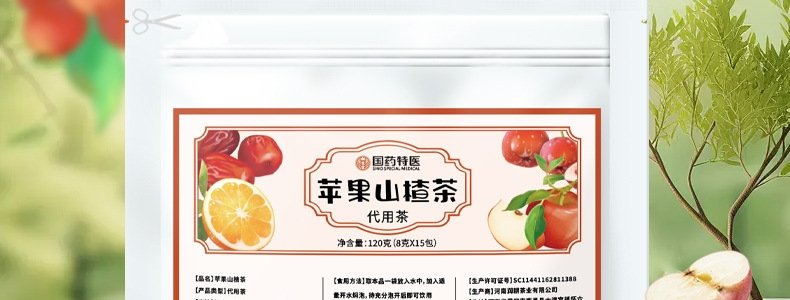 商品名称:昶宝堂 苹果山楂茶 120克*3袋 (8克*15包)/袋