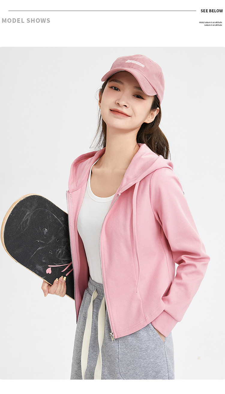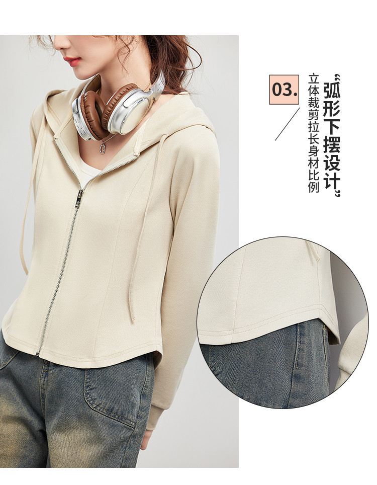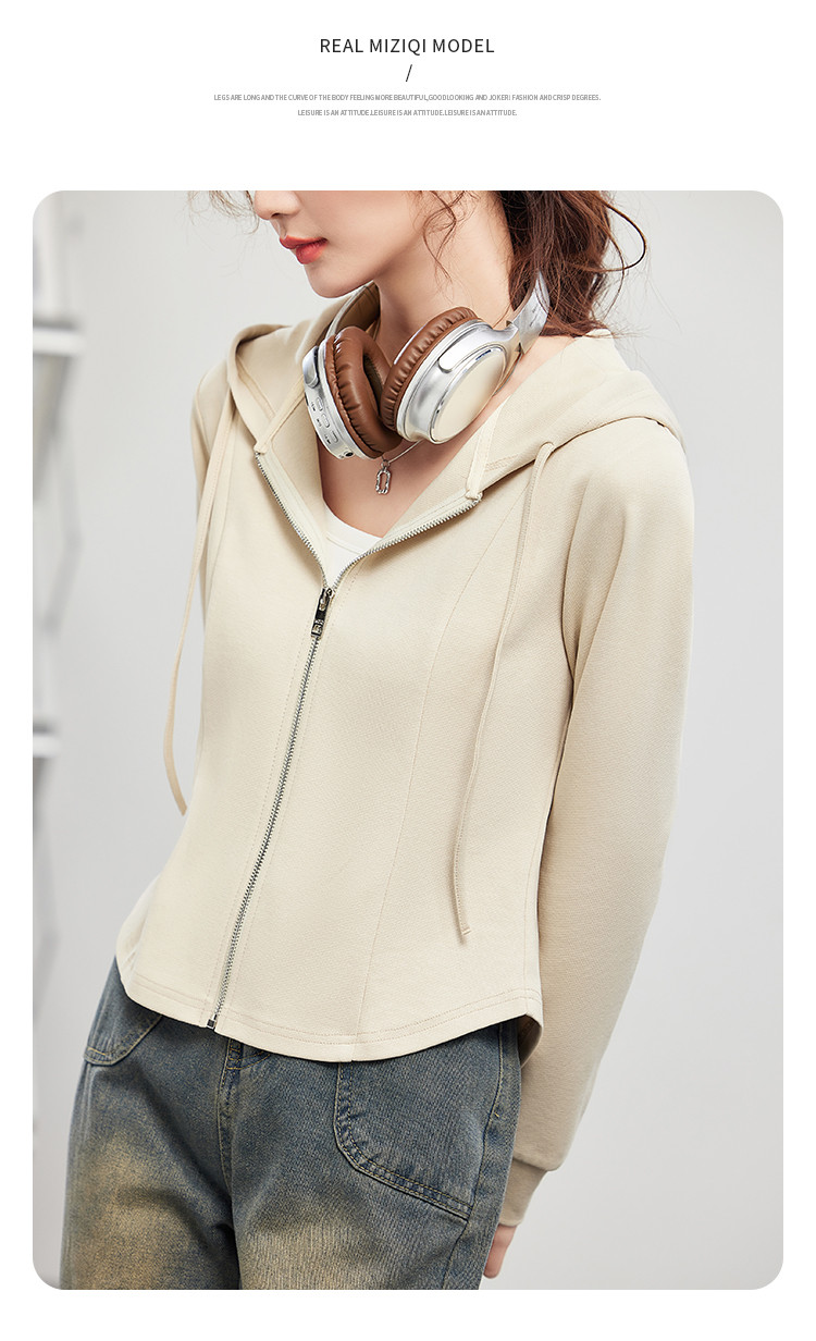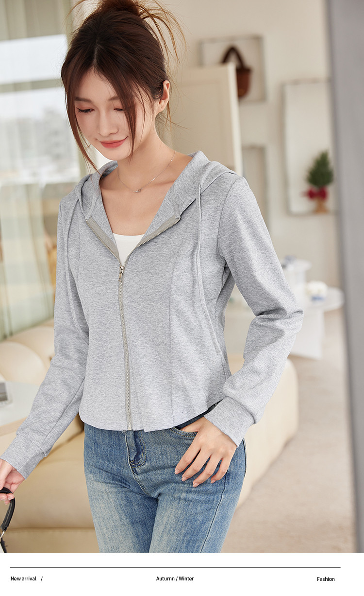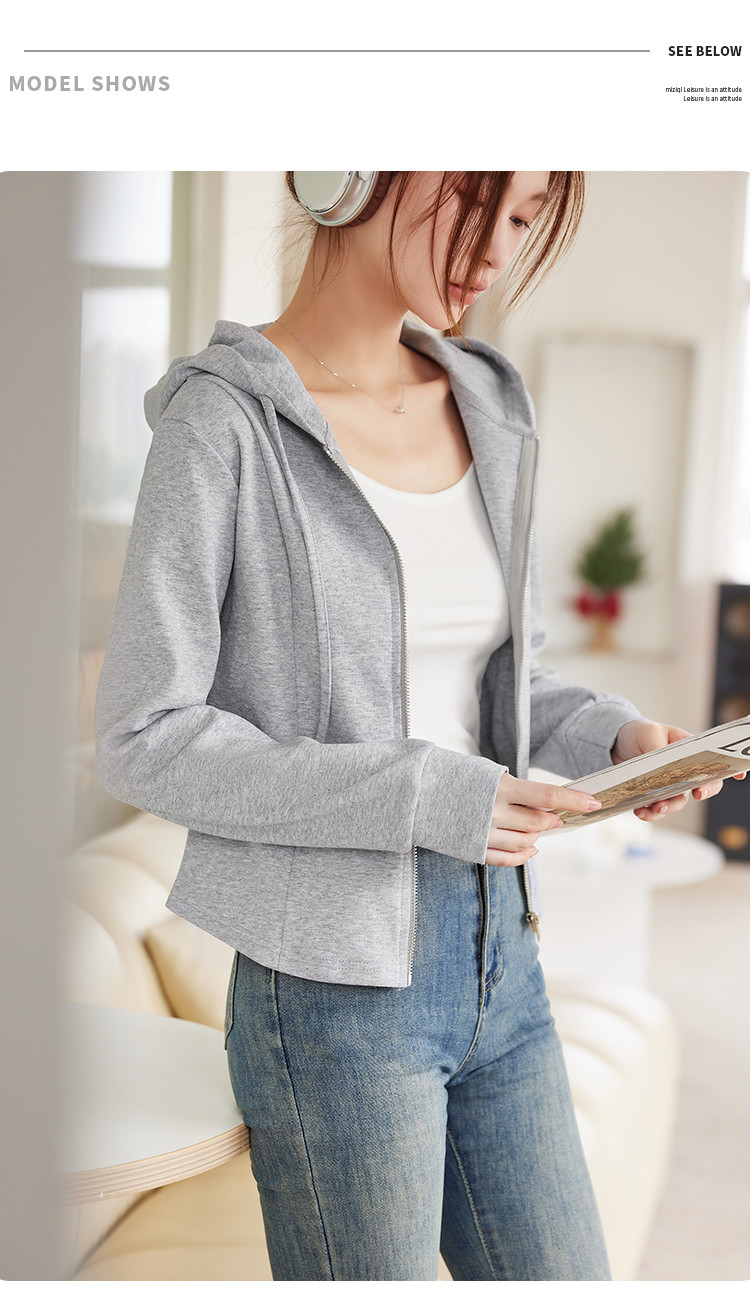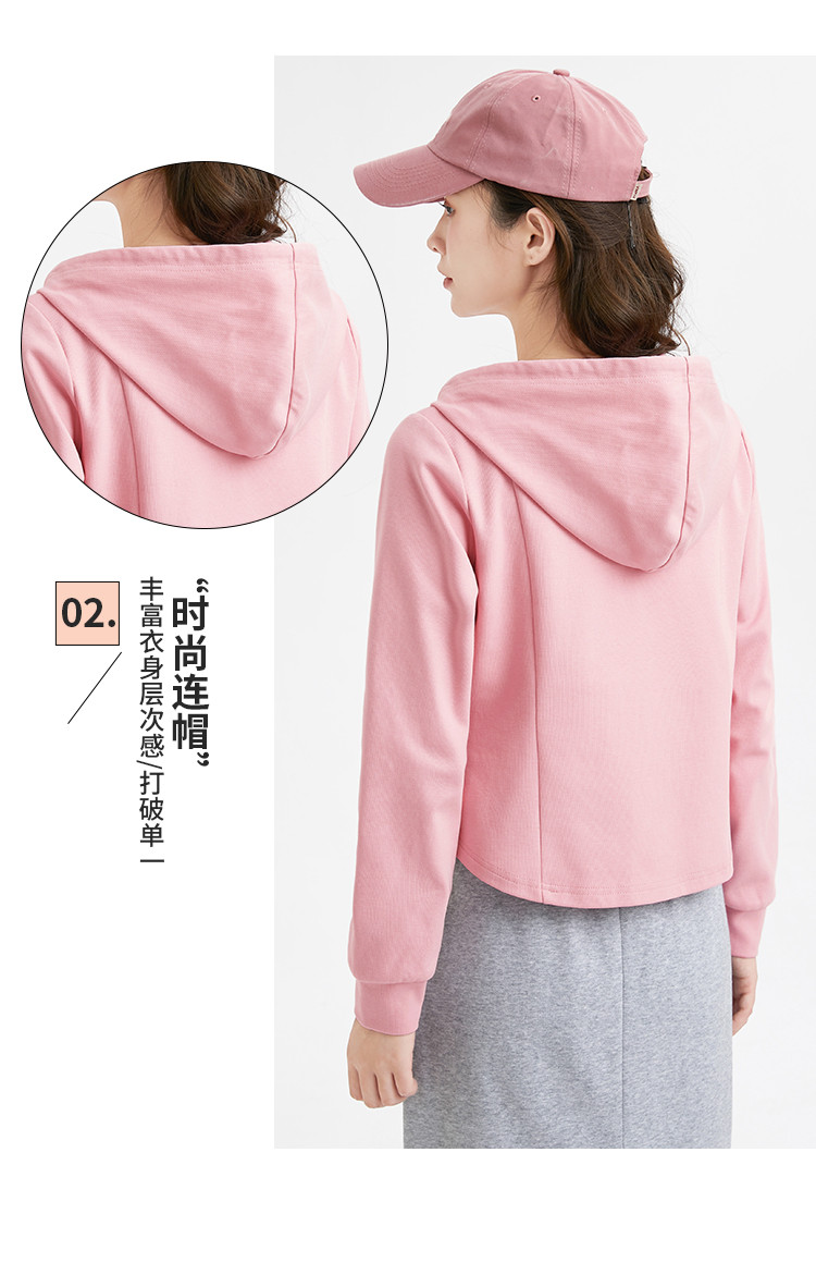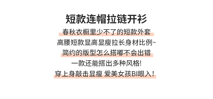 商品名称:米子旗春秋季款连帽短款卫衣纯色拉链开衫外套长袖上衣 067930