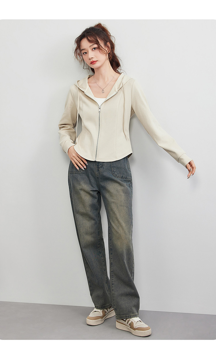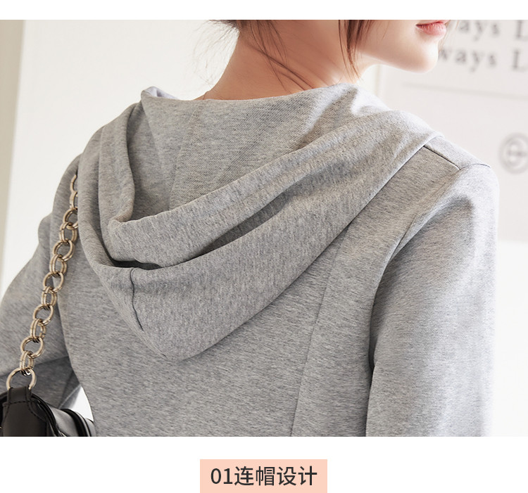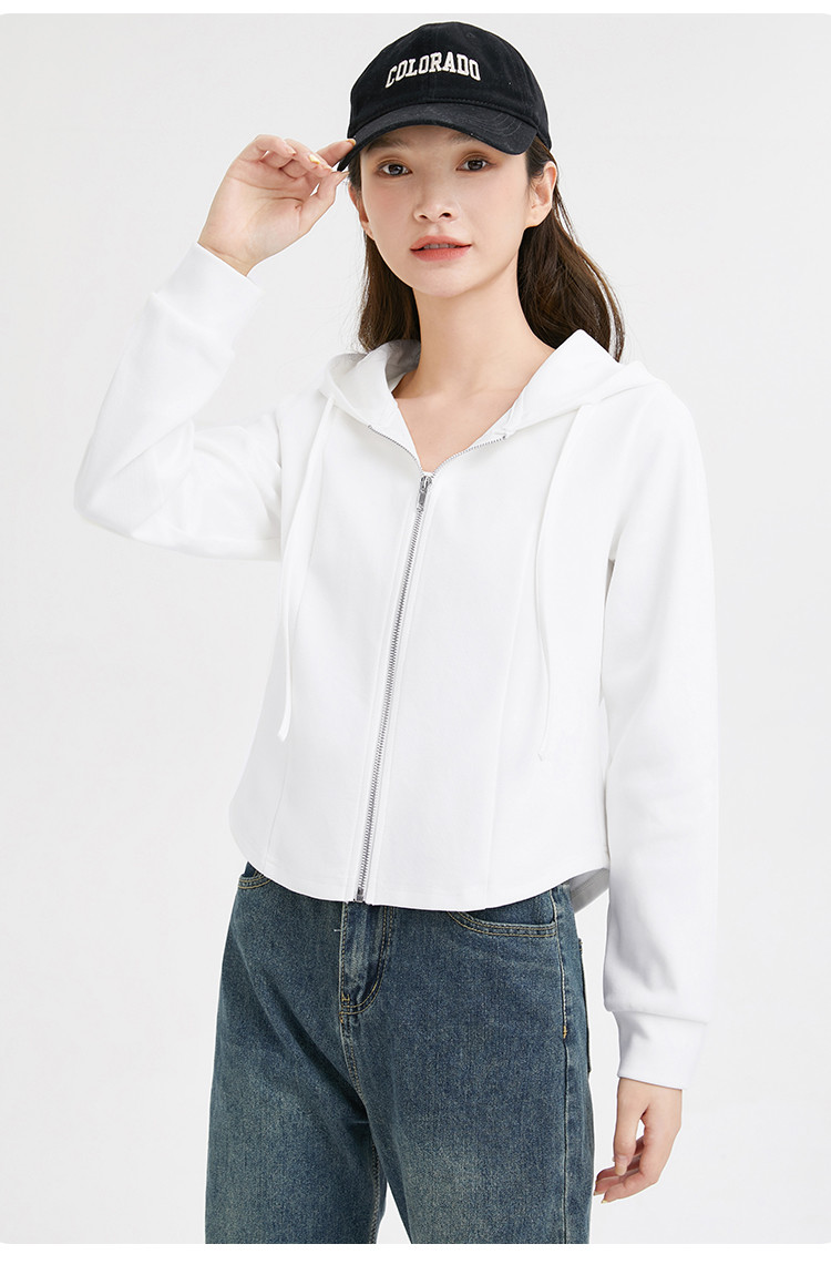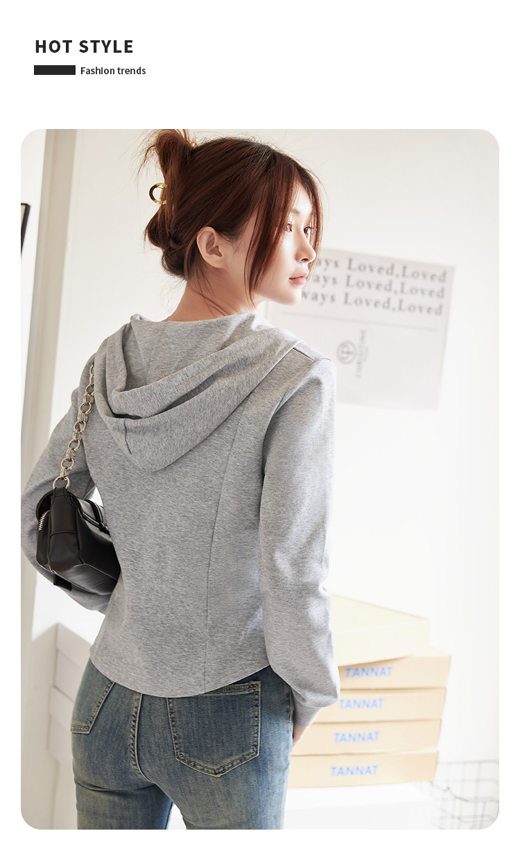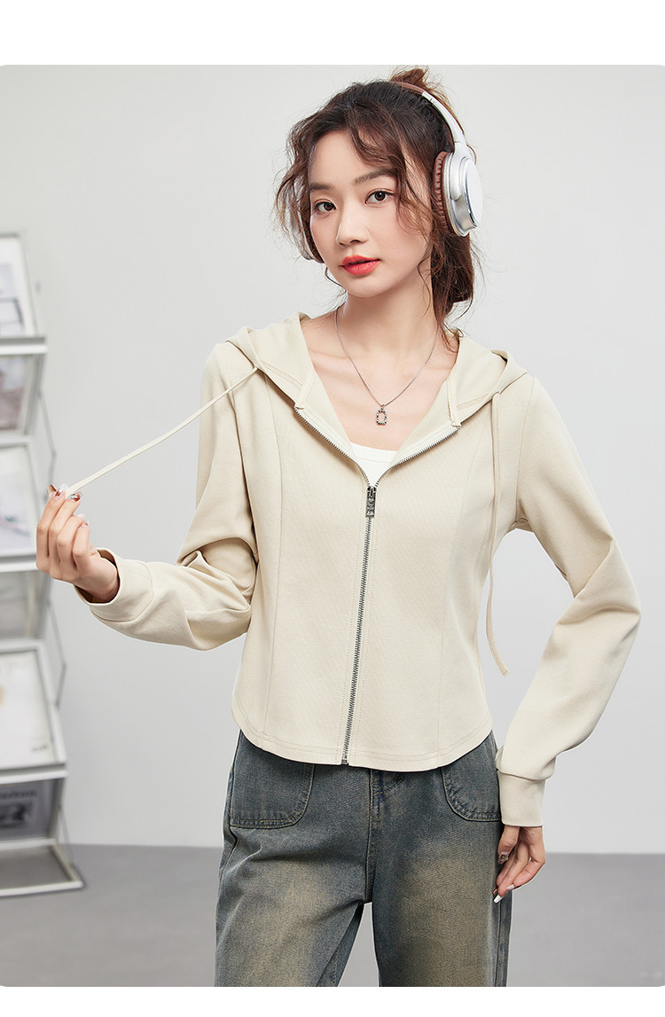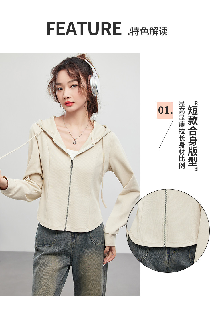 商品名称:米子旗春秋季款连帽短款卫衣纯色拉链开衫外套长袖上衣 067930