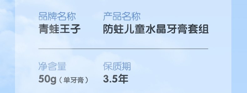 商品名称:青蛙王子 儿童水晶牙膏套装 50g*4支