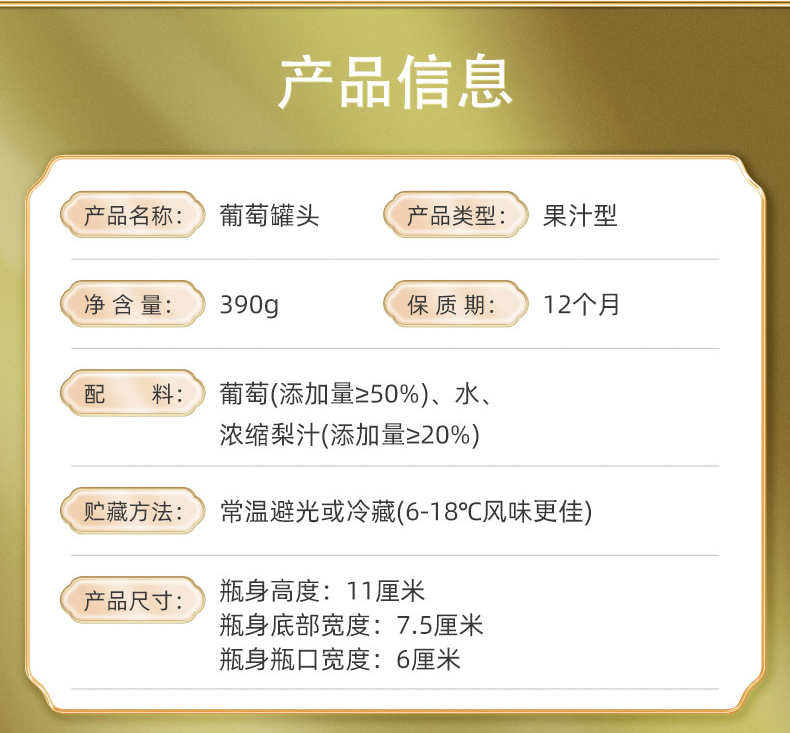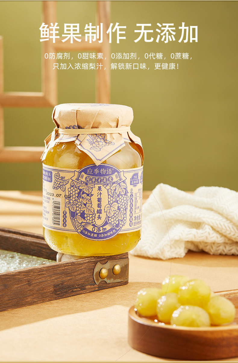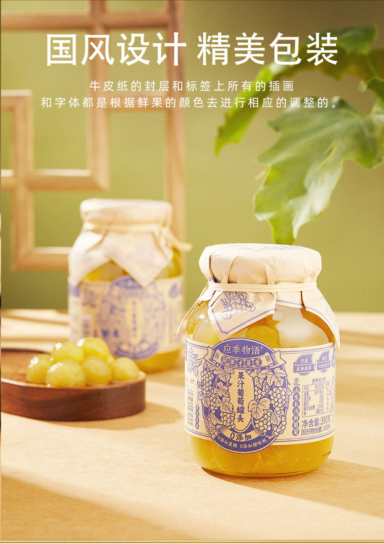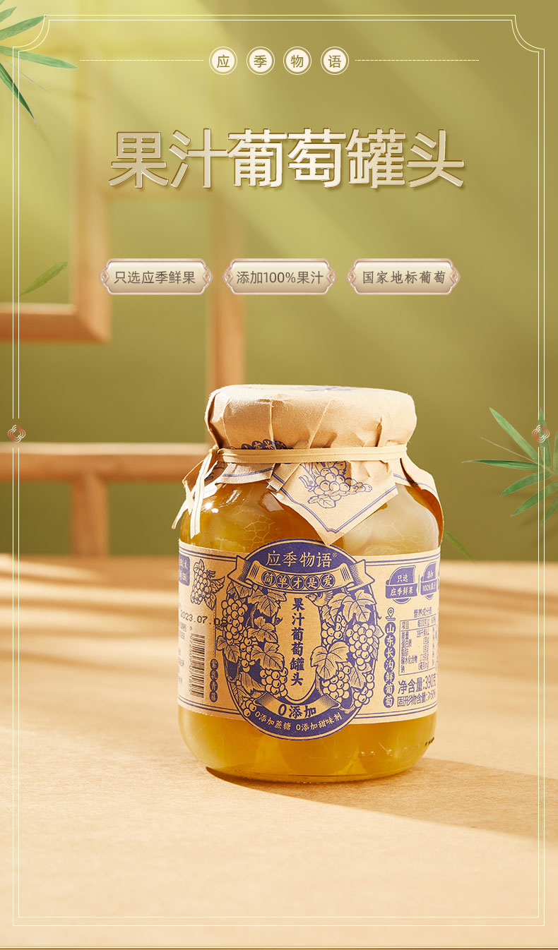 商品名称:应季物语果汁葡萄罐头390g*3罐