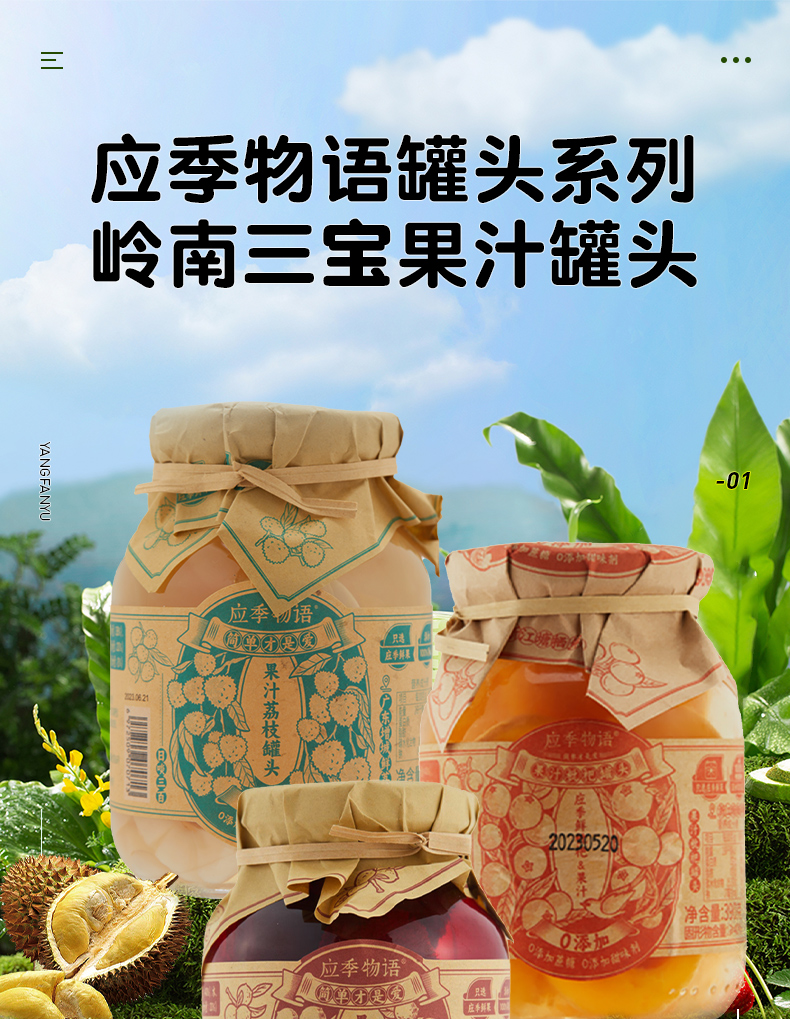 商品名称:应季物语岭南三宝果汁罐头组合 荔枝390g+杨梅390g+枇杷390g