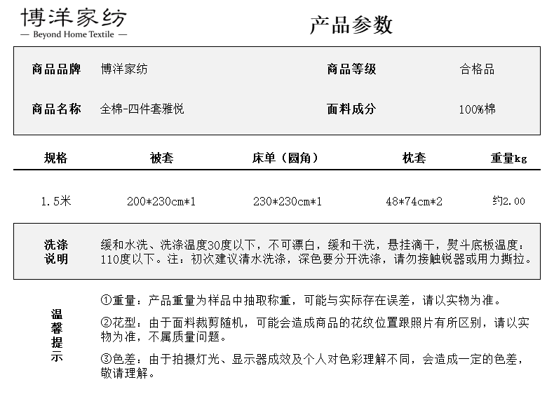 商品名称:BEYOND/博洋家纺雅悦40S全棉床品四件套200*230cm