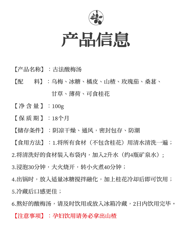 商品名称:张太和古法酸梅汤100g*2袋