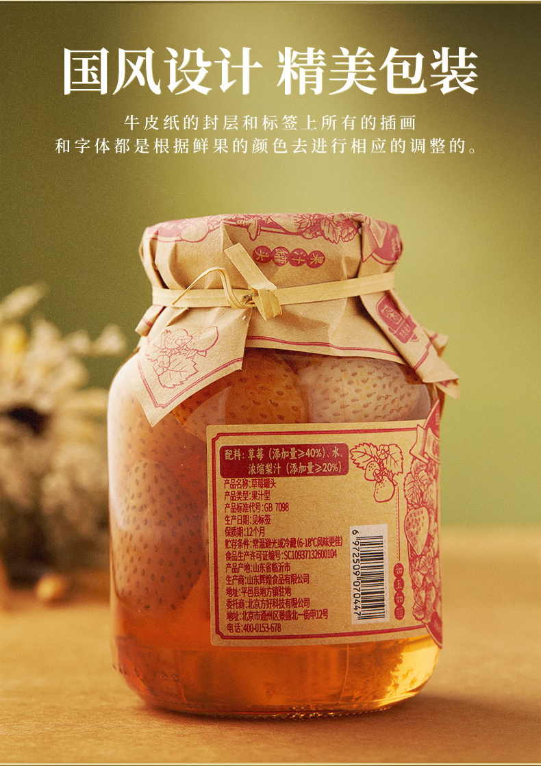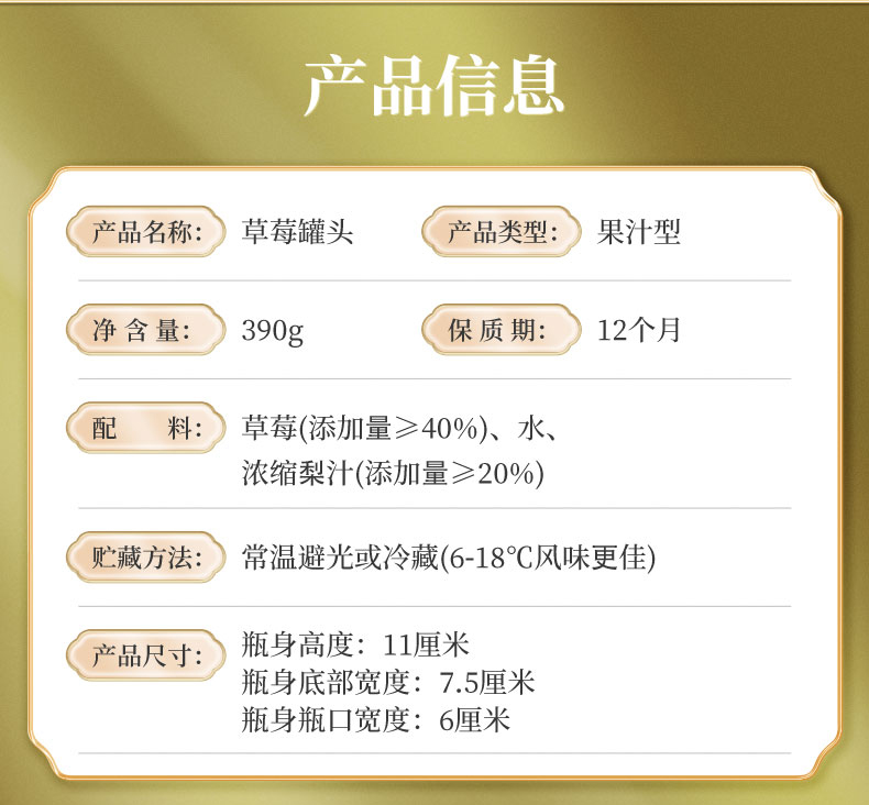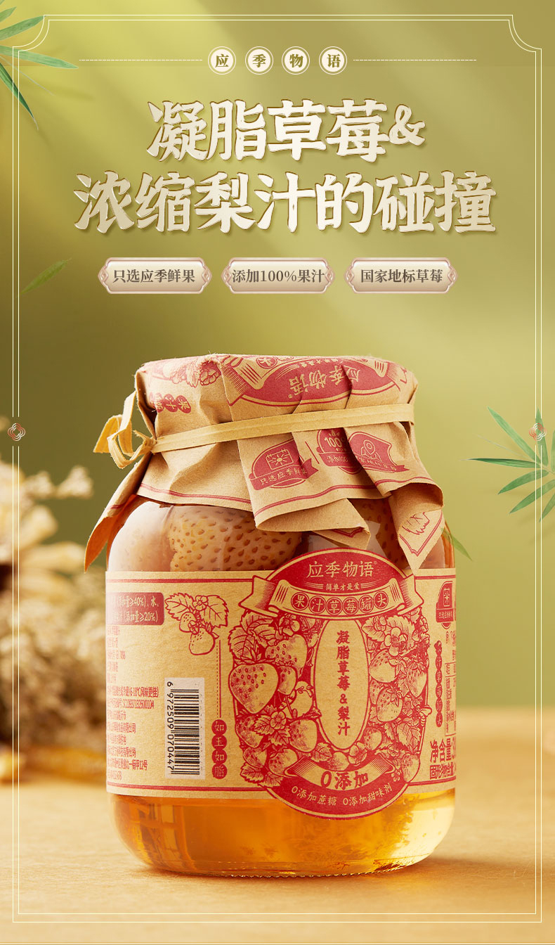 商品名称:应季物语果汁草莓罐头390g*3罐
