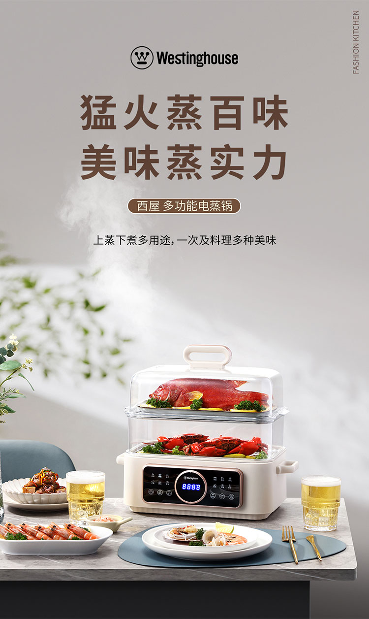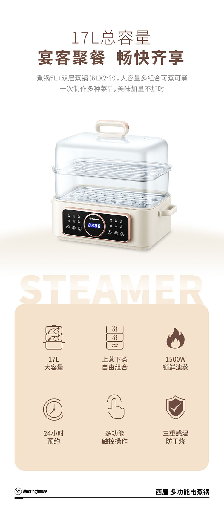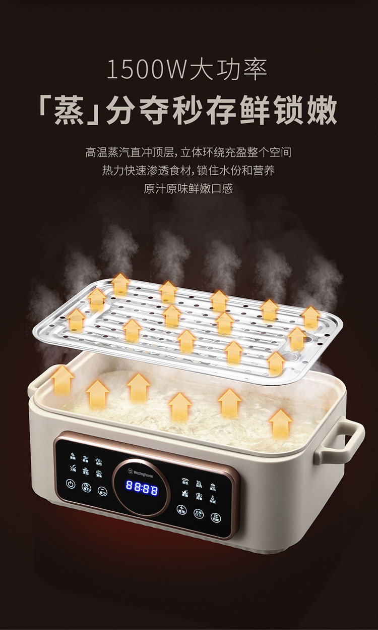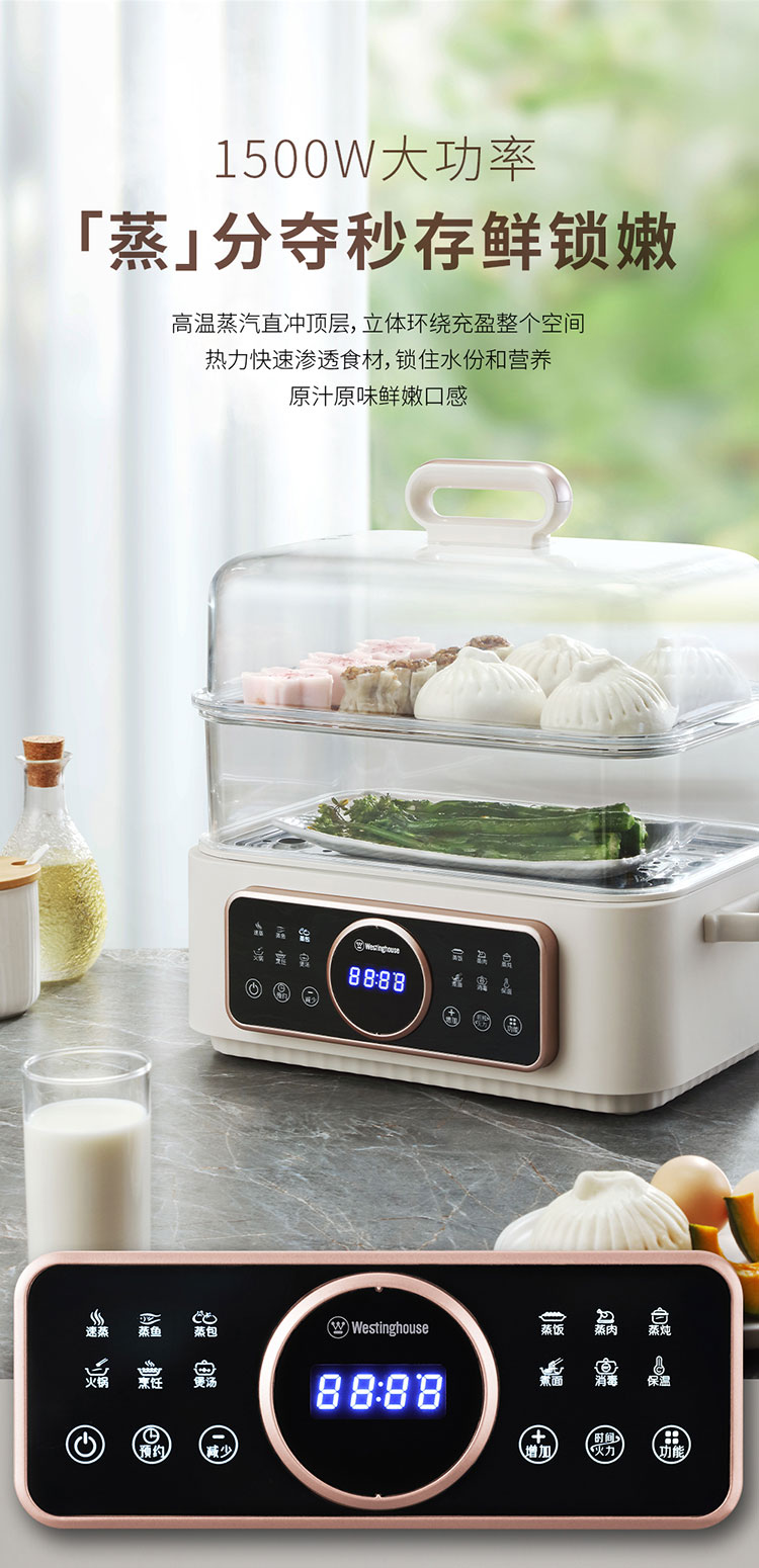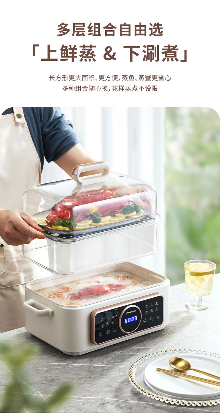 Westinghouse/西屋多功能电蒸锅5升煮锅+6升蒸锅*2 WZL525D