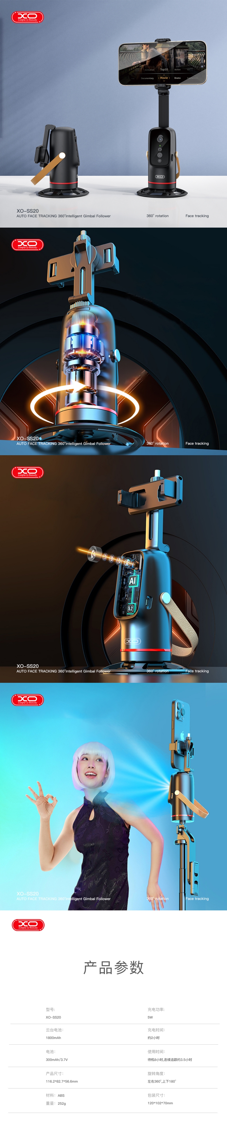 商品名称:XO Simple Is Beauty智能人脸跟踪桌面直播自拍云台XO-SS20