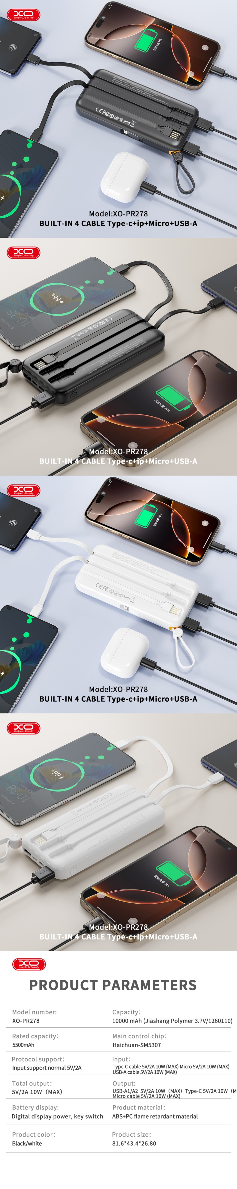 商品名称:XO Simple Is Beauty自带4线5500mAh移动电源XO-PR278