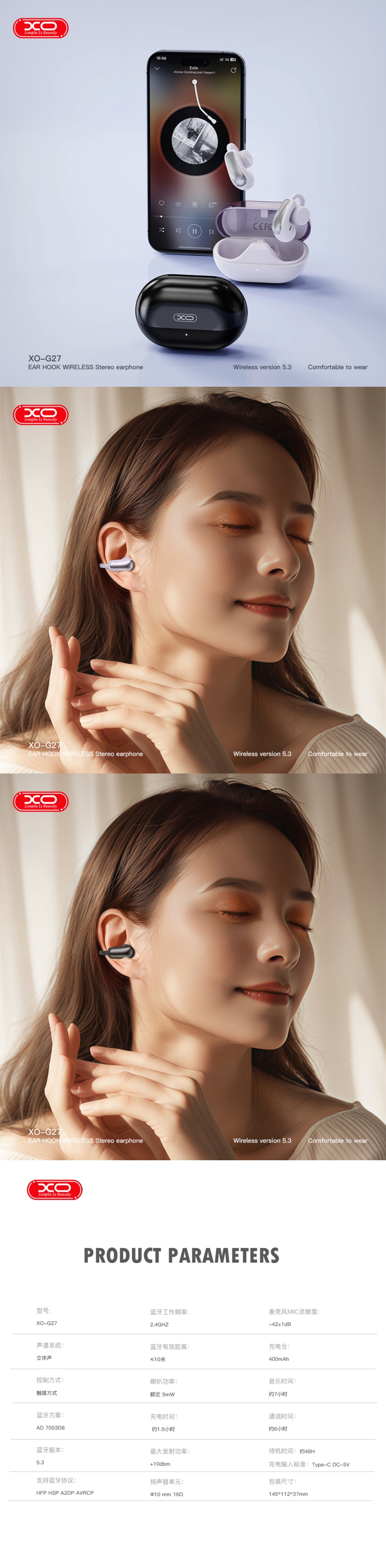 商品名称:XO Simple Is Beauty颜可夹耳TWS蓝牙耳机XO-G27