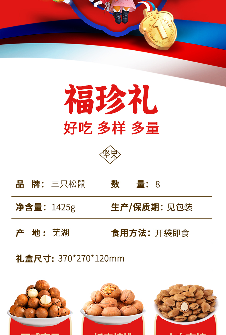 商品名称:三只松鼠2025福珍礼坚果零食礼盒1425g