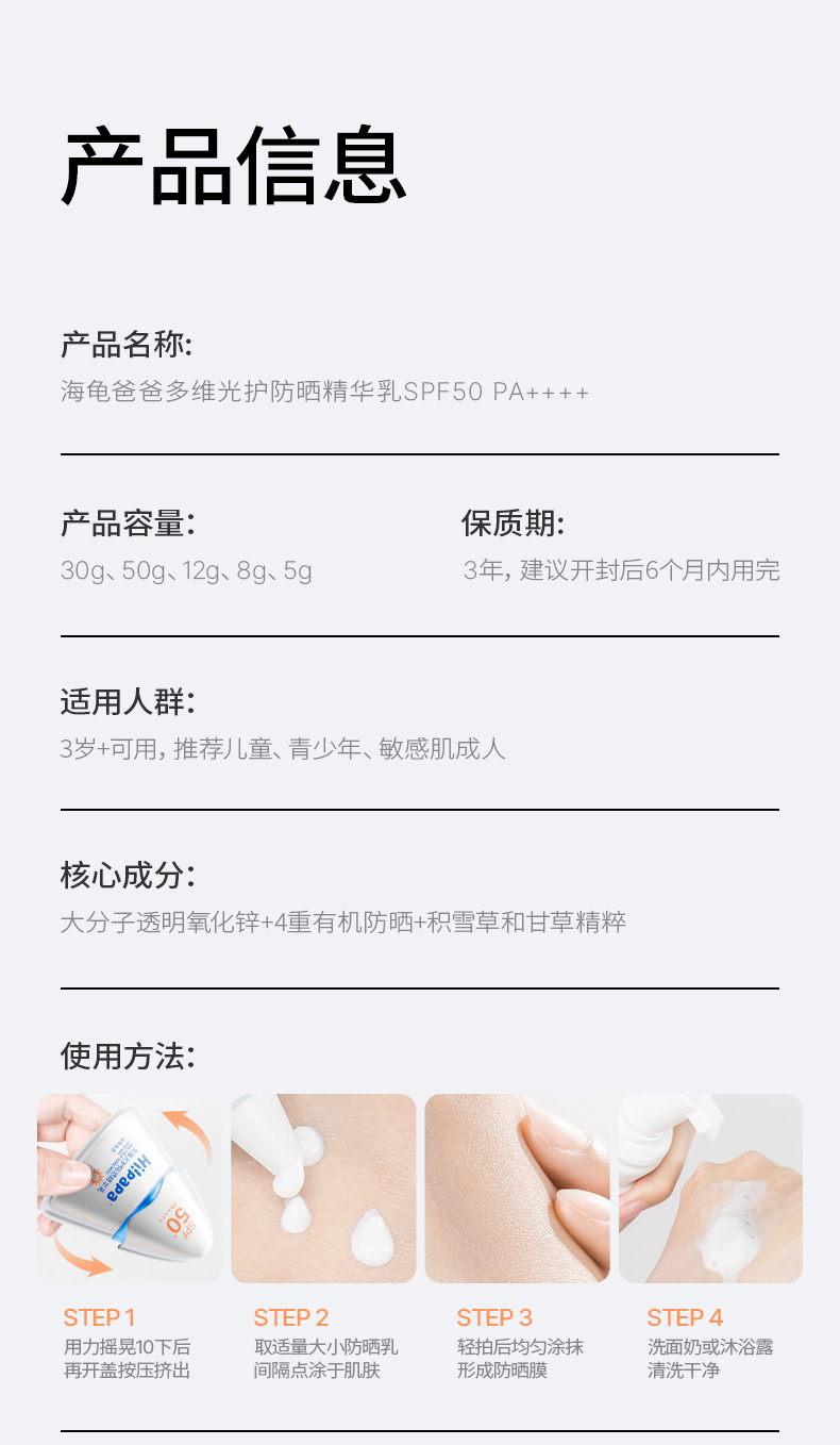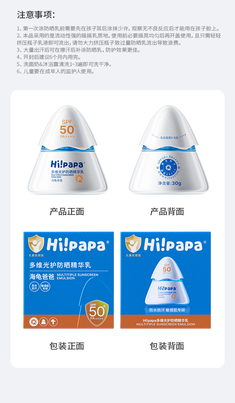 商品名称:Hi papa/海龟爸爸多维光护防晒精华乳