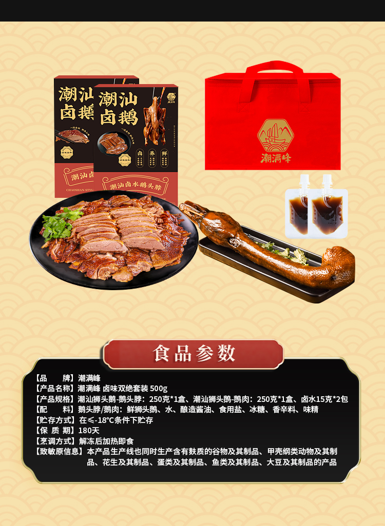 商品名称:潮满峰卤味双绝卤鹅套装500g