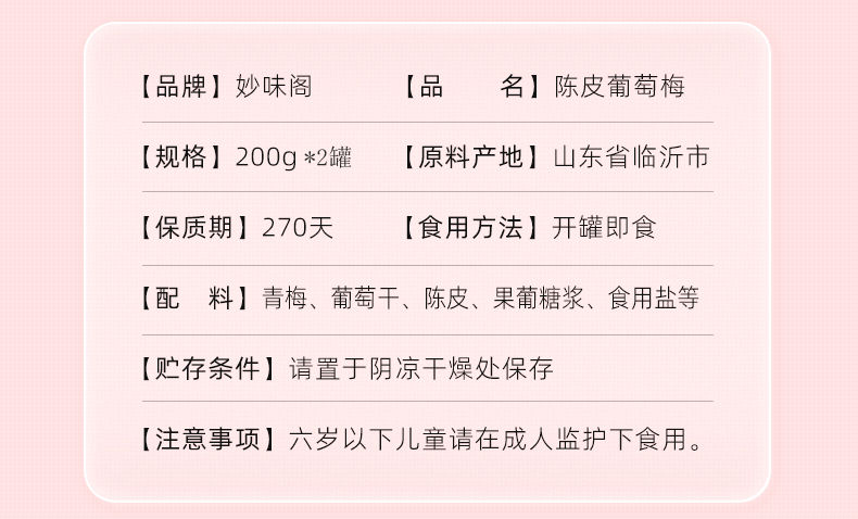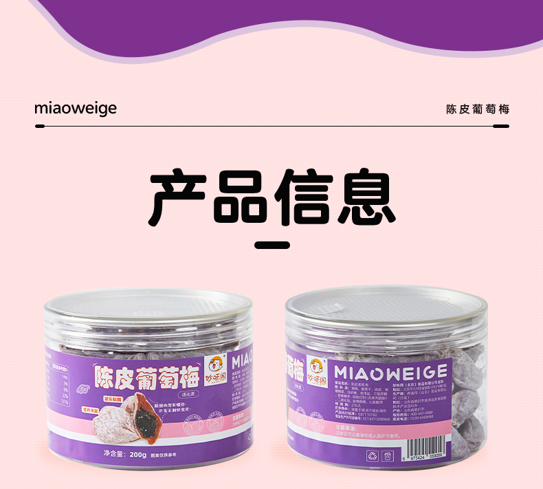 商品名称:妙味阁陈皮葡萄梅200g*2罐