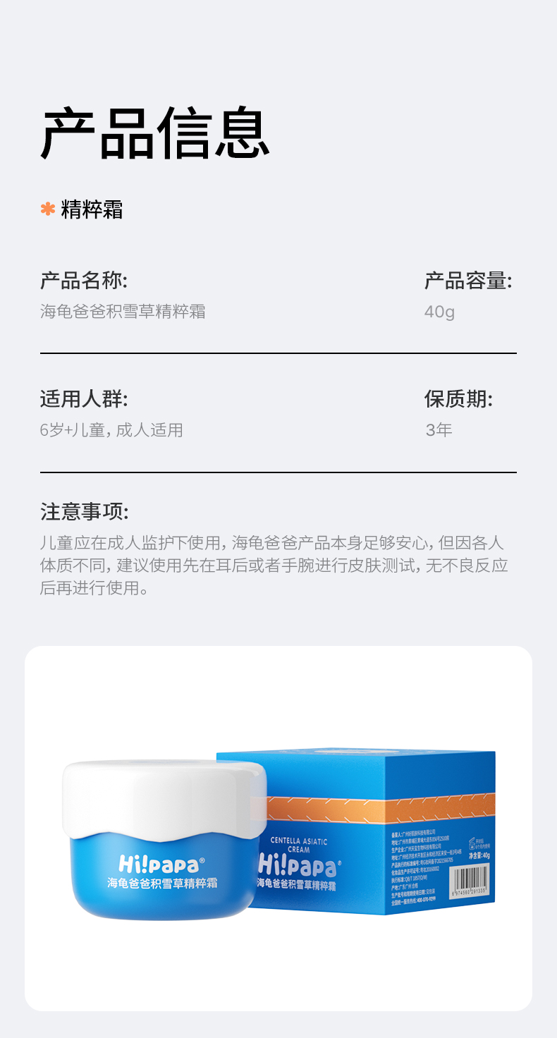 商品名称:Hi papa/海龟爸爸积雪草精粹霜40g