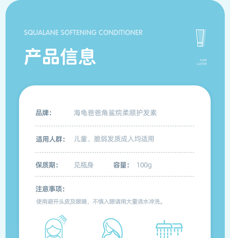 商品名称:Hi papa/海龟爸爸角鲨烷柔顺护发素100g
