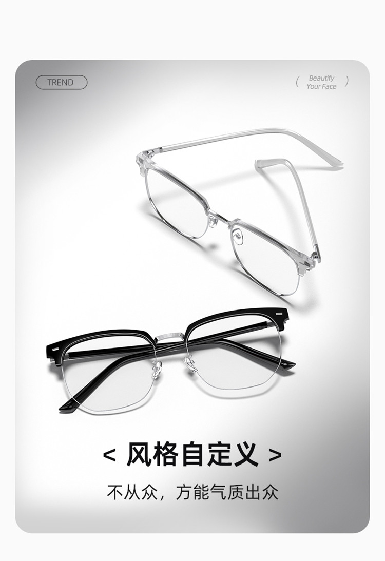 商品名称:眼镜男款超轻防蓝光抗无度数眼镜框近视眼镜架女眉眼线框平光镜女 953668