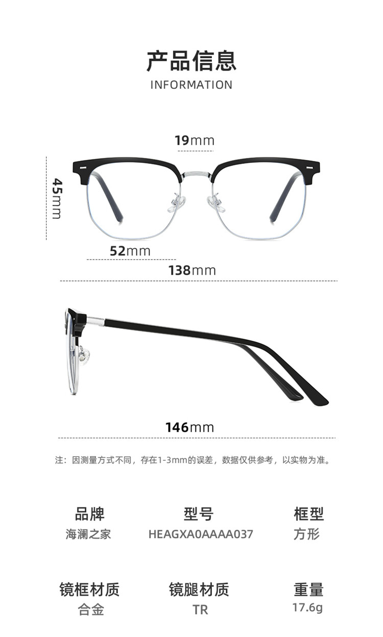 砂黑【无度数防蓝光镜片】