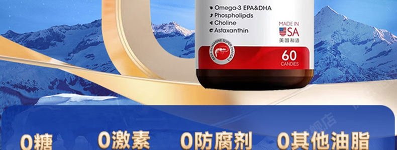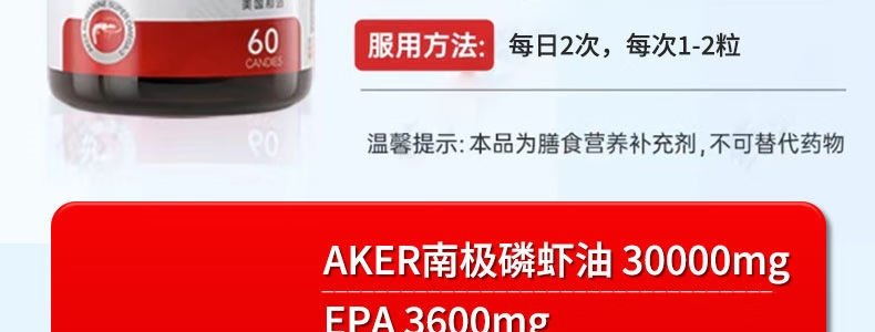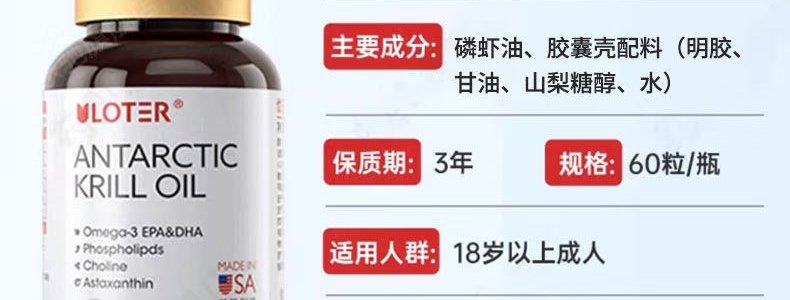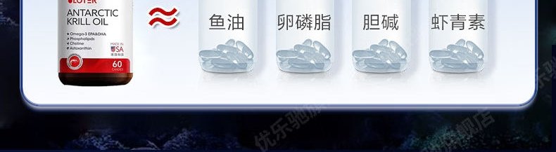 商品名称:美国 优乐驰 南极磷虾油软胶囊 60粒/瓶