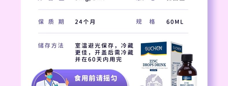 商品名称:素臣(SUCHEN) 婴幼儿第三代锌滴剂 60ml