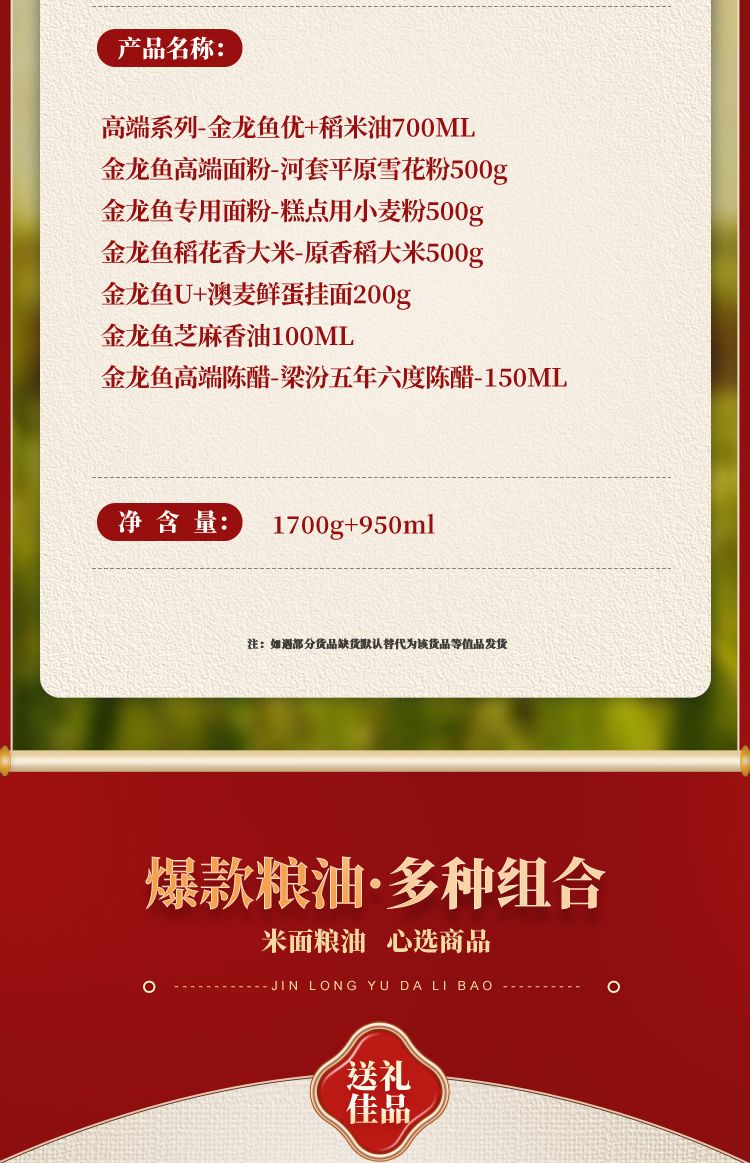 商品名称:金龙鱼大礼包A款1700g+950ml