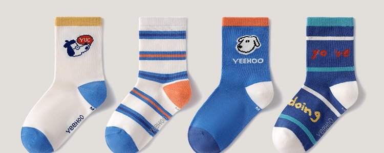 商品名称:英氏(Yeehoo)四季款棉质袜子【7A抑菌4双装】男童条纹小狗 L码