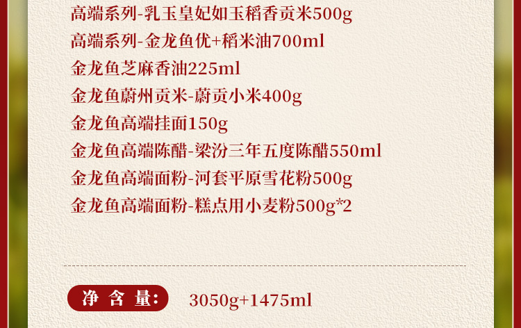 商品名称:金龙鱼大礼包C款3050g+1475ml