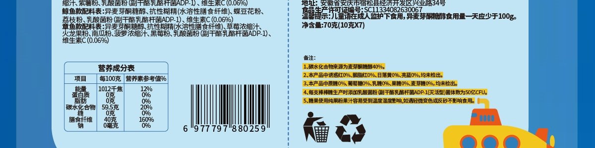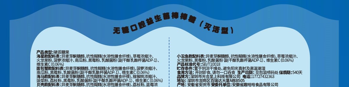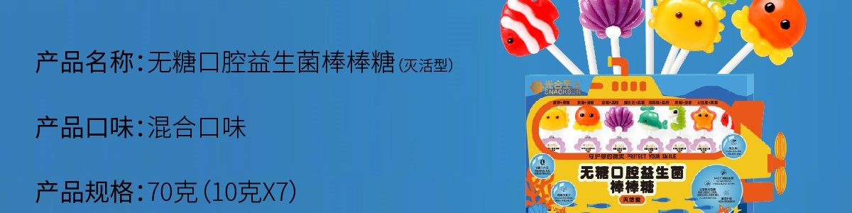 商品名称:光合至上 (snacksun) 无糖口腔益生菌棒棒糖 海洋系列款 70g/盒