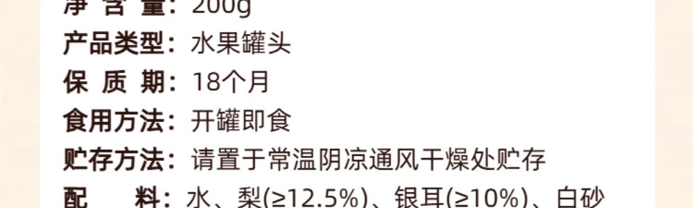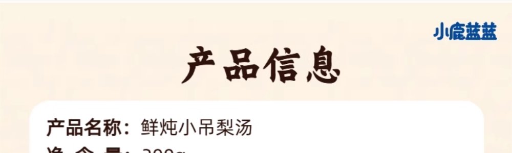 商品名称:小鹿蓝蓝 鲜炖小吊梨汤 200g/罐