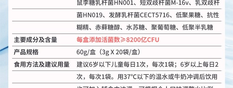 商品名称:美斯莱 益生菌粉 3g*20支/盒