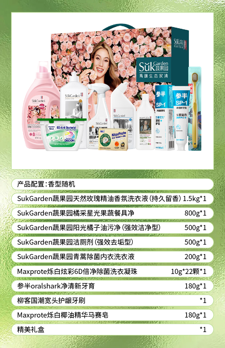 商品名称:SukGarden/蔬果园玫瑰精油香氛洁净九件套SGYCJ-241109