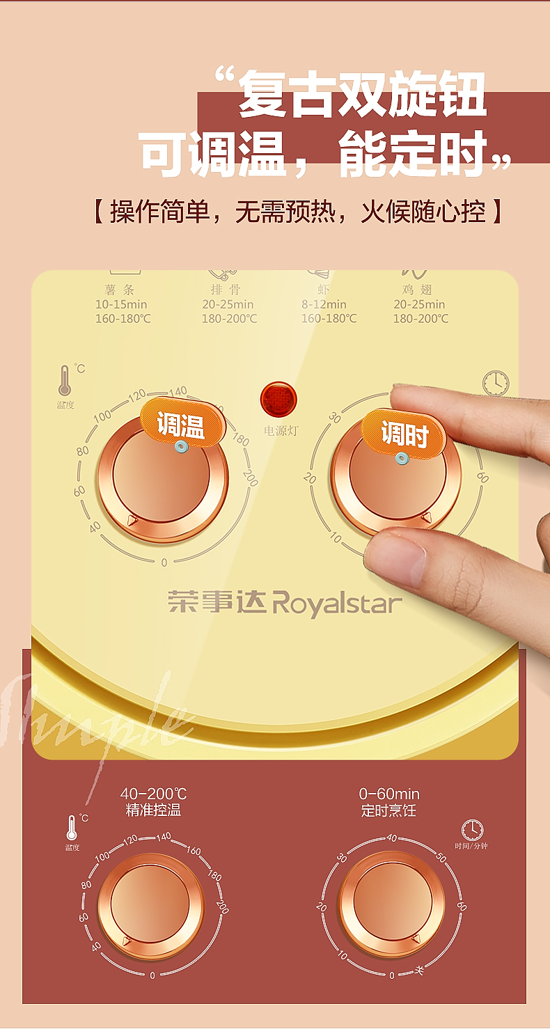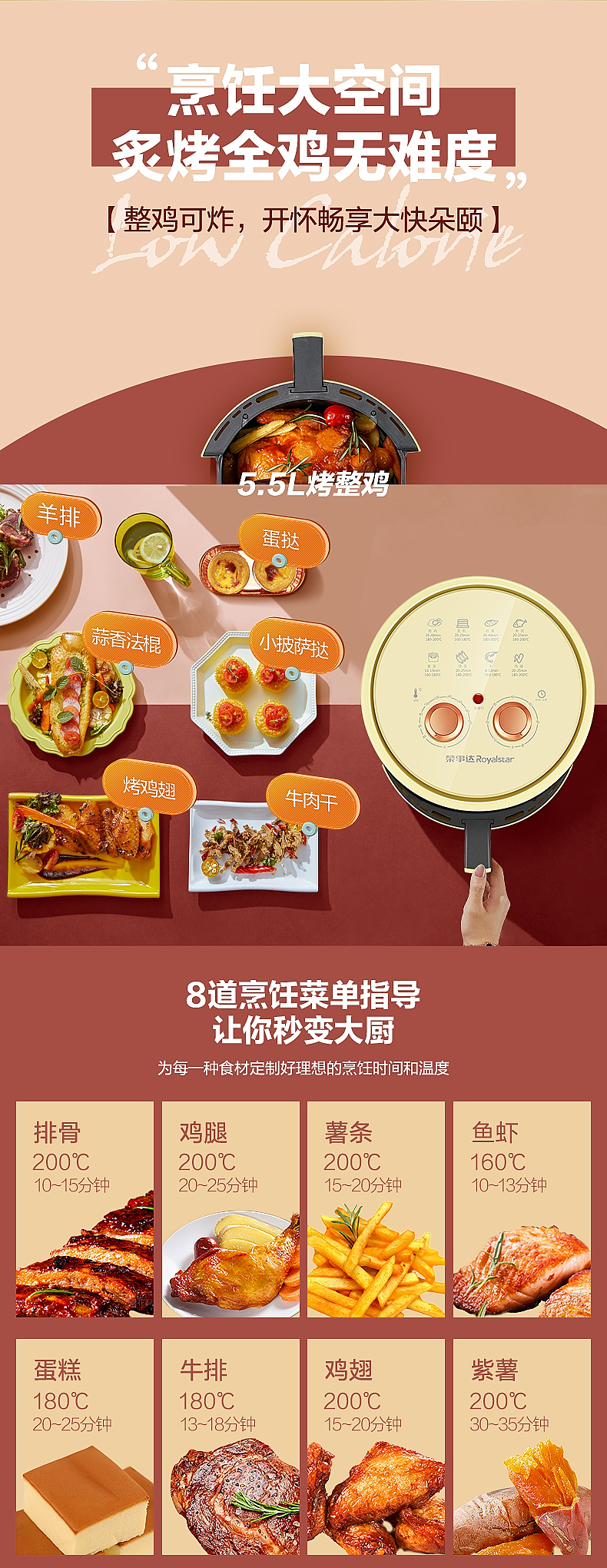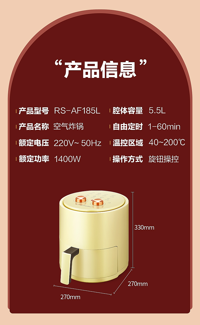 商品名称:Royalstar/荣事达5.5升空气炸锅RS-AF185L