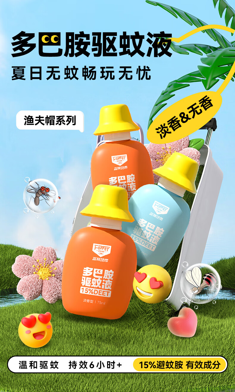 森林地带多巴胺渔夫帽驱蚊液75ml*2瓶 SLDD009