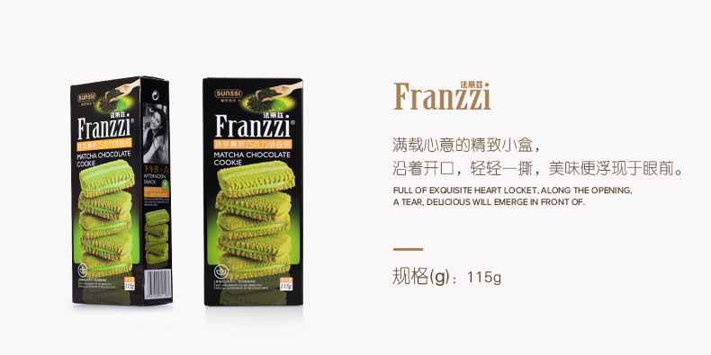 商品名称:Franzzi/法丽兹抹茶慕斯巧克力味曲奇115g*3盒
