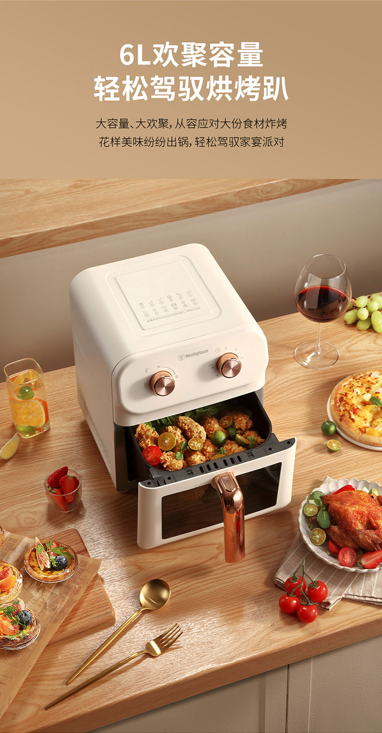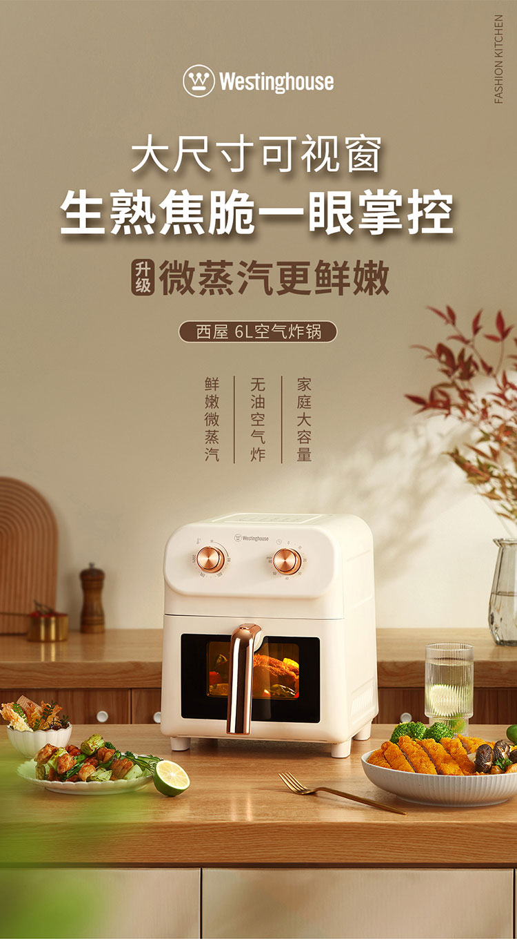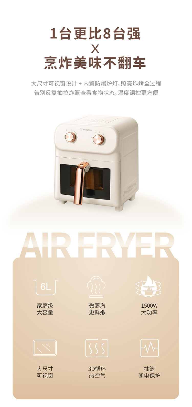 Westinghouse/西屋6升可视微蒸汽空气炸锅-米黄色WKZ60T01