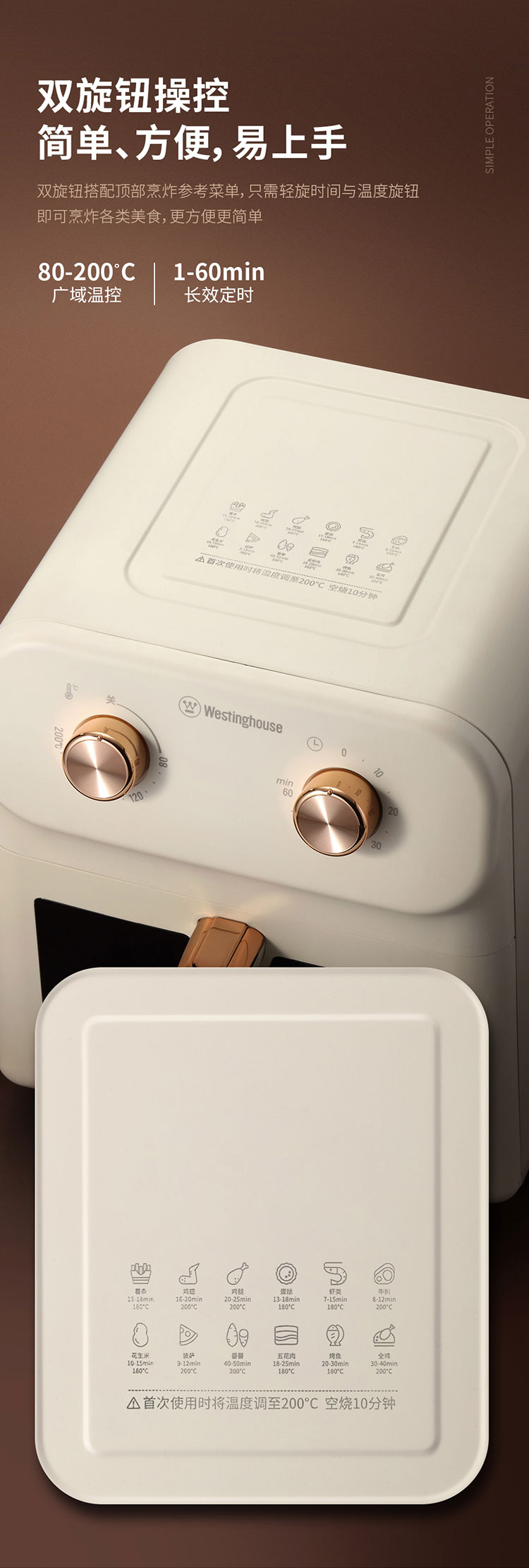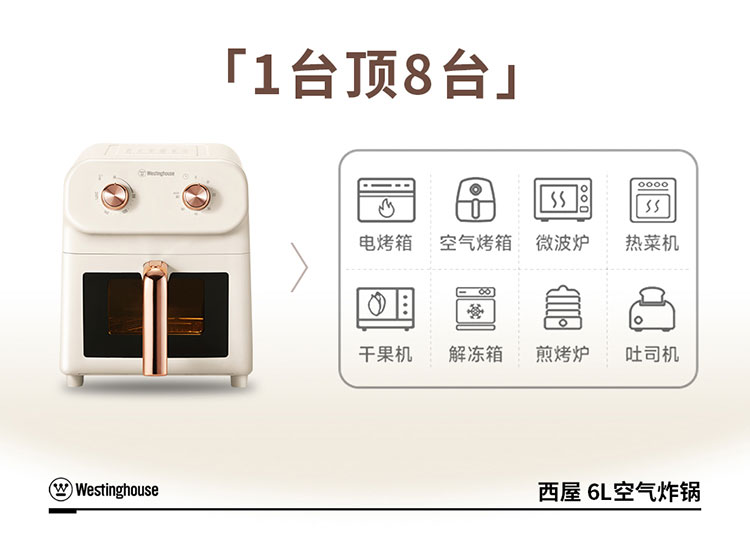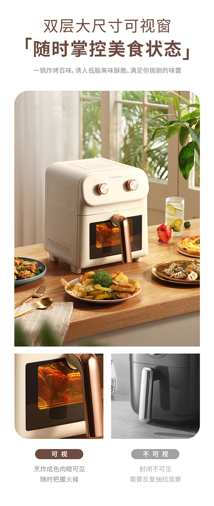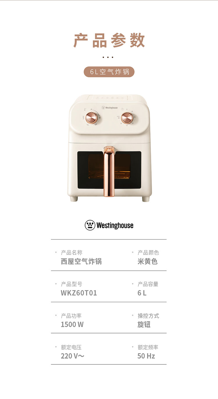 商品名称:Westinghouse/西屋6升可视微蒸汽空气炸锅-米黄色WKZ60T01
