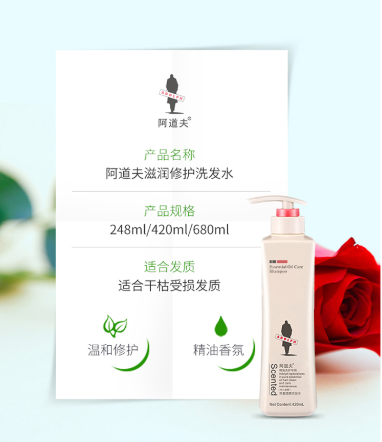 商品名称:阿道夫精油香护理专研洗发水(滋润修护)420ml