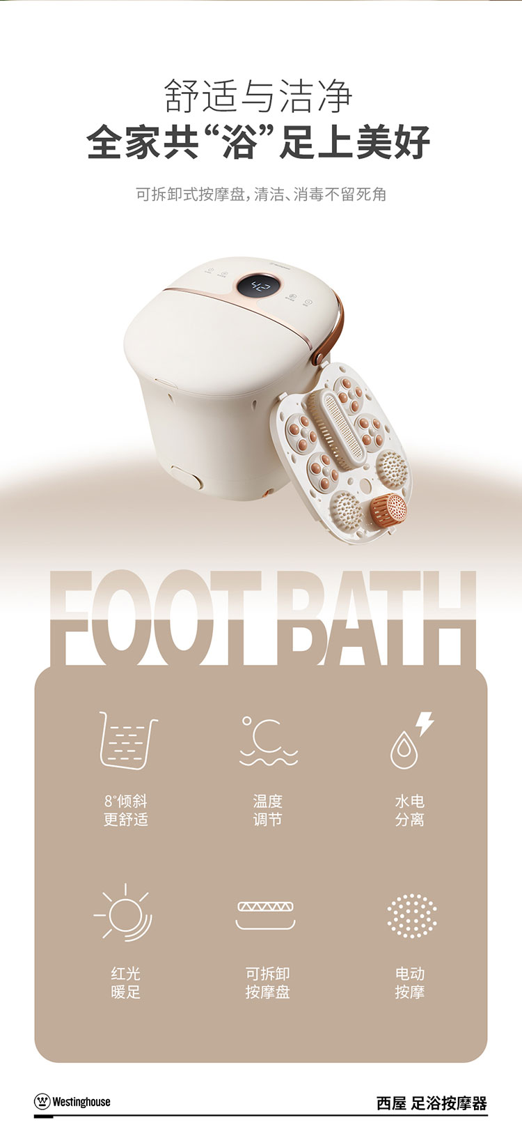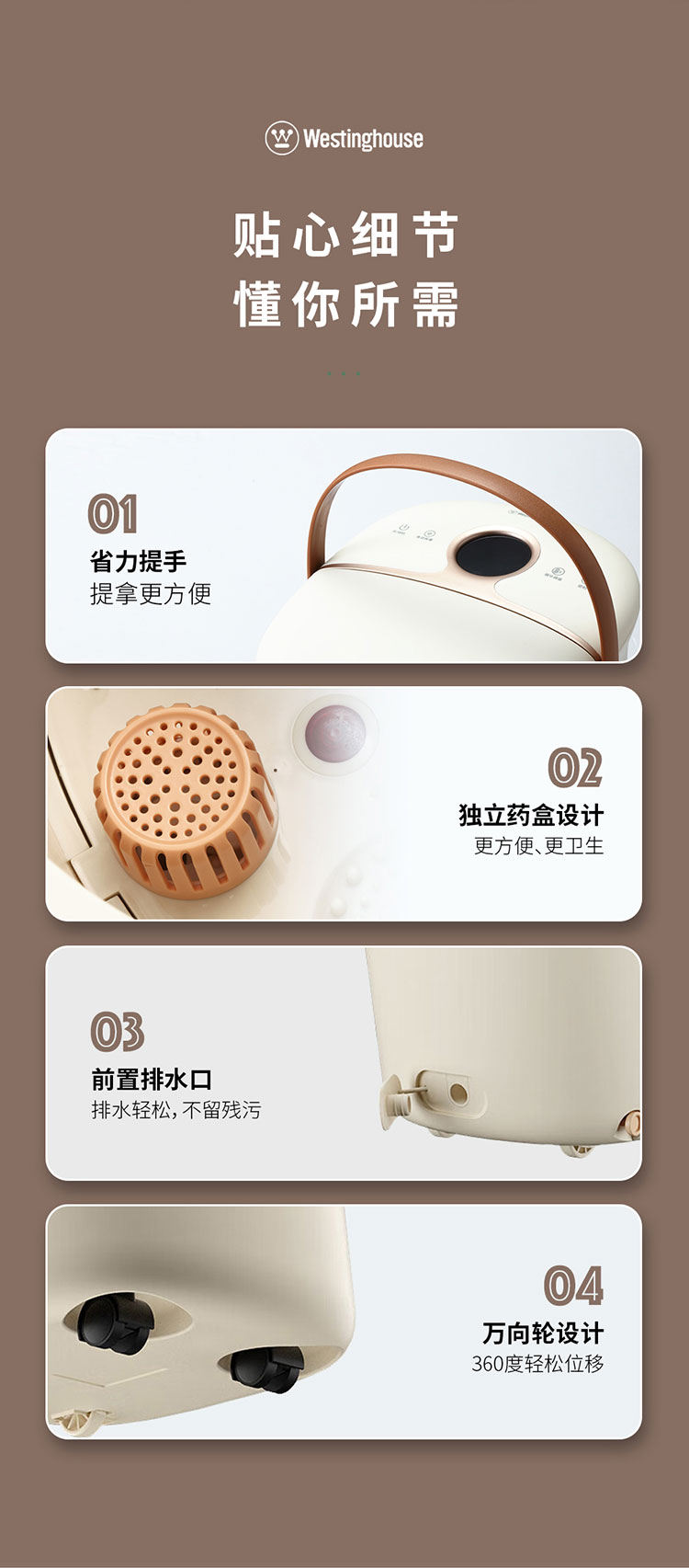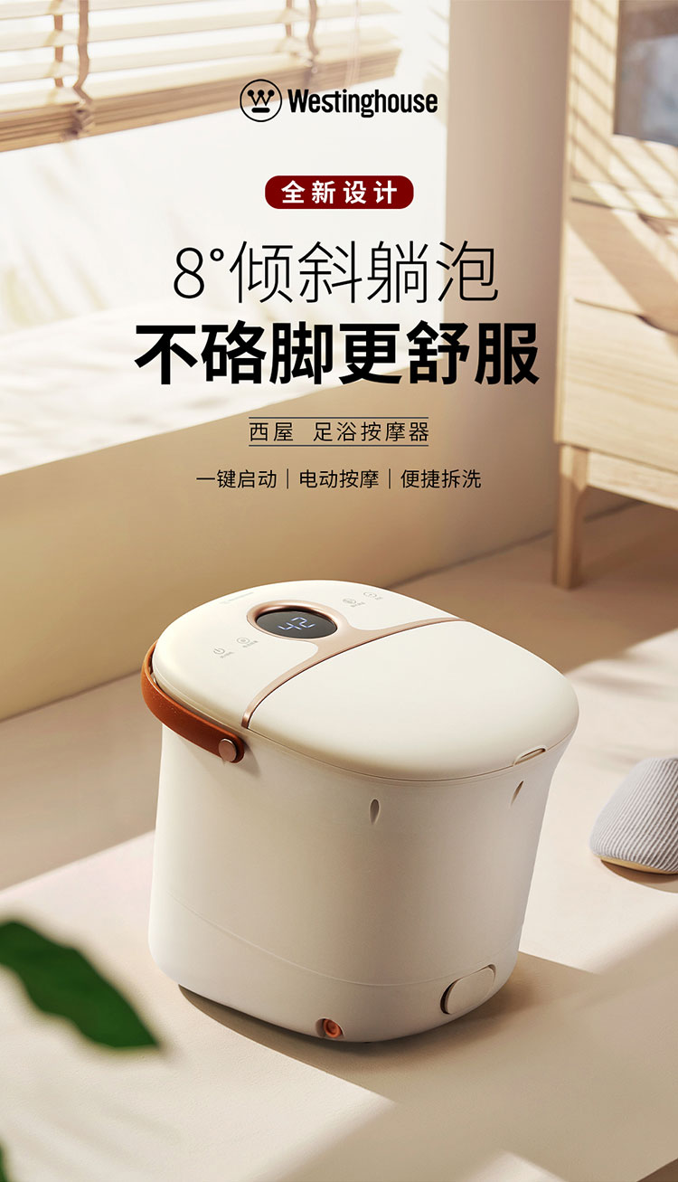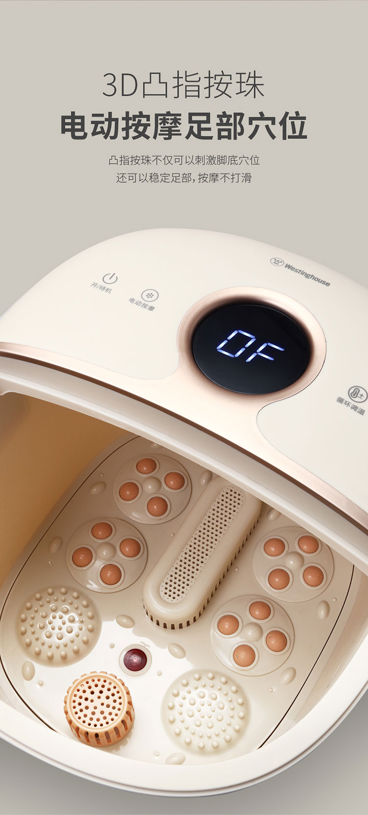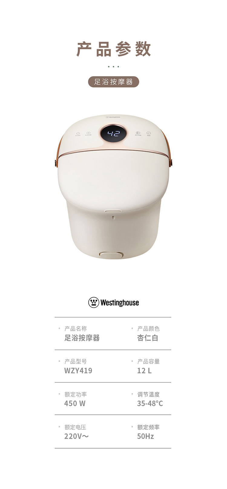 商品名称:Westinghouse/西屋12升足浴按摩器-杏仁白WZY419