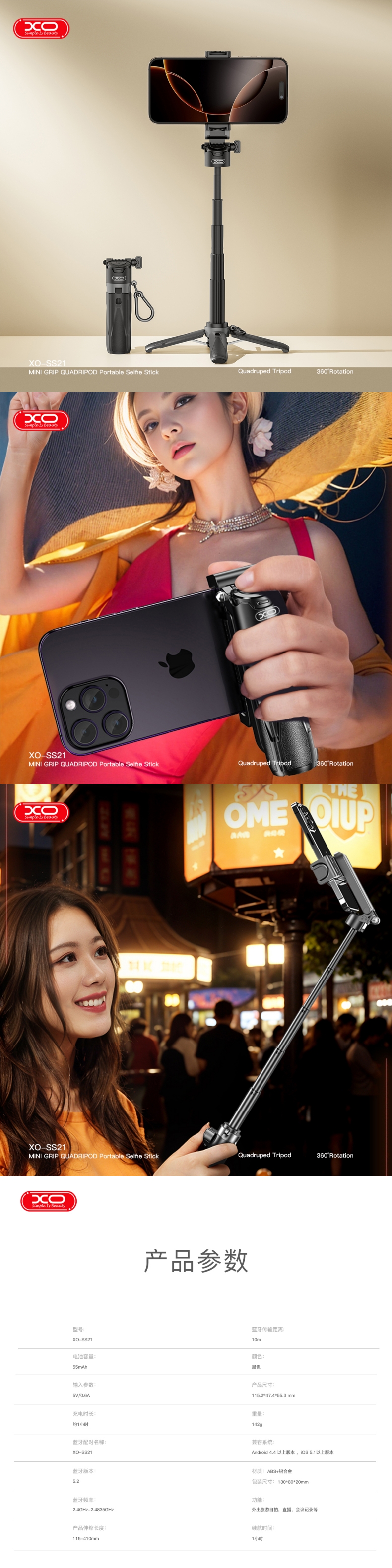 XO Simple Is Beauty四合一多功能迷你蓝牙自拍杆XO-SS21