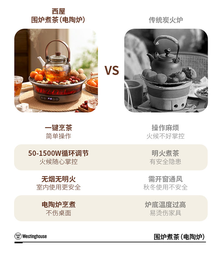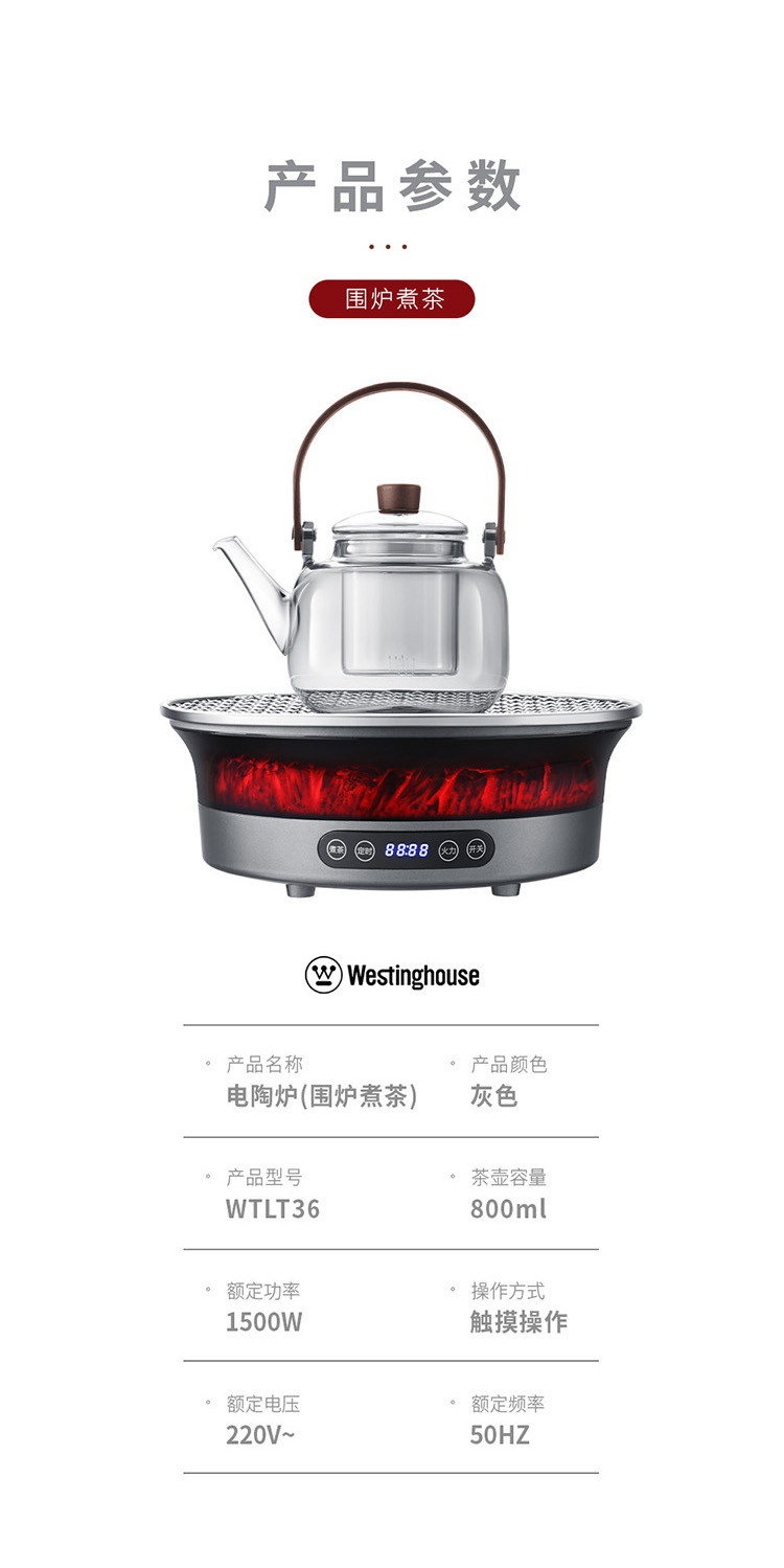 商品名称:Westinghouse/西屋800毫升电陶炉围炉煮茶器-灰色WTLT36