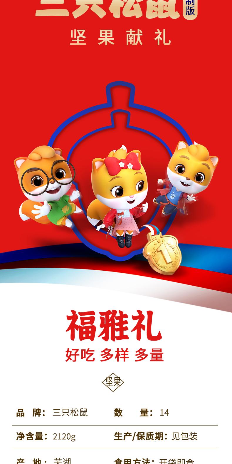 商品名称:三只松鼠2025福雅礼坚果零食礼盒2120g