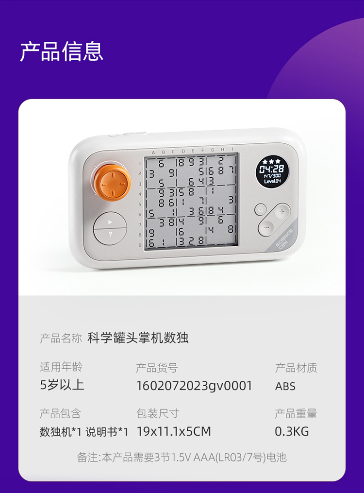商品名称:SCIENCE CAN /科学罐头掌机数独