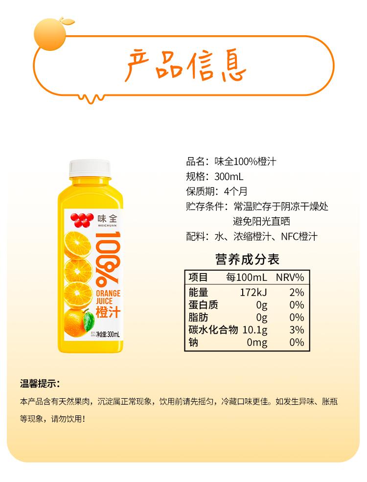 商品名称:【京东/顺丰配送】味全100%橙汁整箱300ml*20瓶