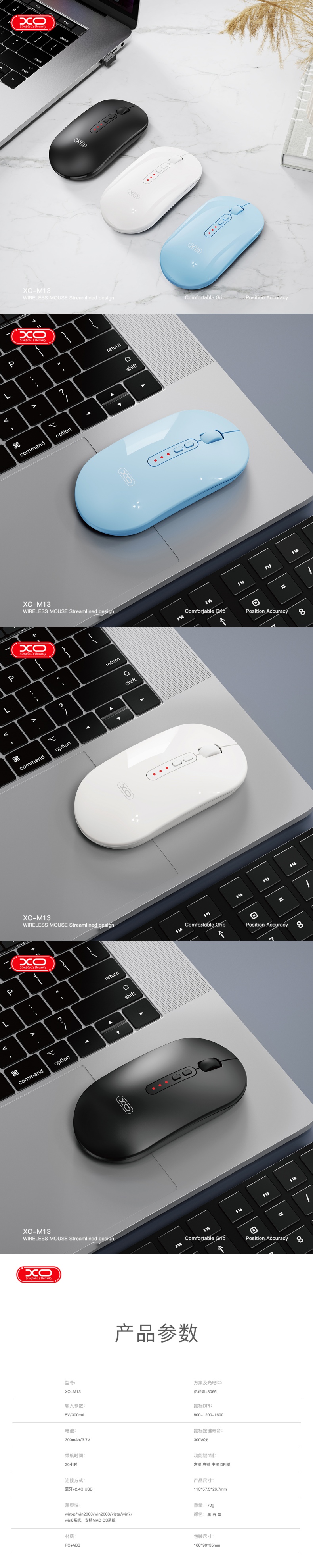 商品名称:XO Simple Is Beauty充电版三模无线静音鼠标XO-M13